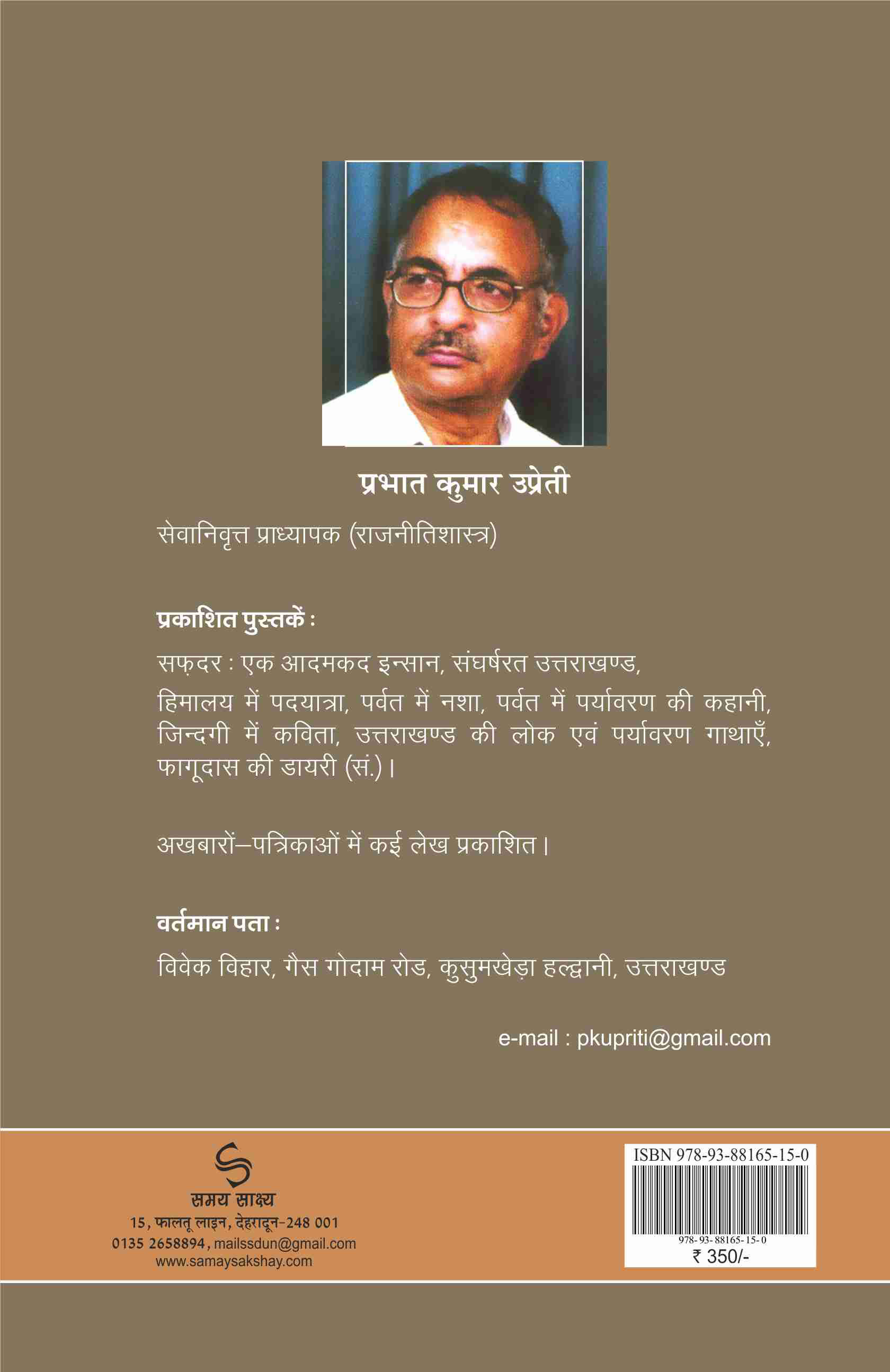यह प्रसिद्ध लेखक प्रभात कुमार उप्रेती की पुस्तक है। पुस्तक उत्तराखंड की राजनीति पर एक समसामयिक आलेख व विचारों का संग्रह है। पुस्तक में मध्यकाल से उत्तराखंड की राजनीति, राजनीतिक विचार व वाद पर विमर्श है। पुस्तक में चिपको आंदोलन, क्षेत्रवाद, पर्यावरण, शराब विरोधी आंदोलन, दल बदल, क्षेत्रीय दलों का अवसान व मुद्दों के चलन पर विचार व्यक्त किए गए हैं। यह पुस्तक मध्यकाल, व्रिटिश काल व उत्तराखंड राज्य गठन के बाद के राजनीतिक हालातों की तस्वीर भी पेश करती है।